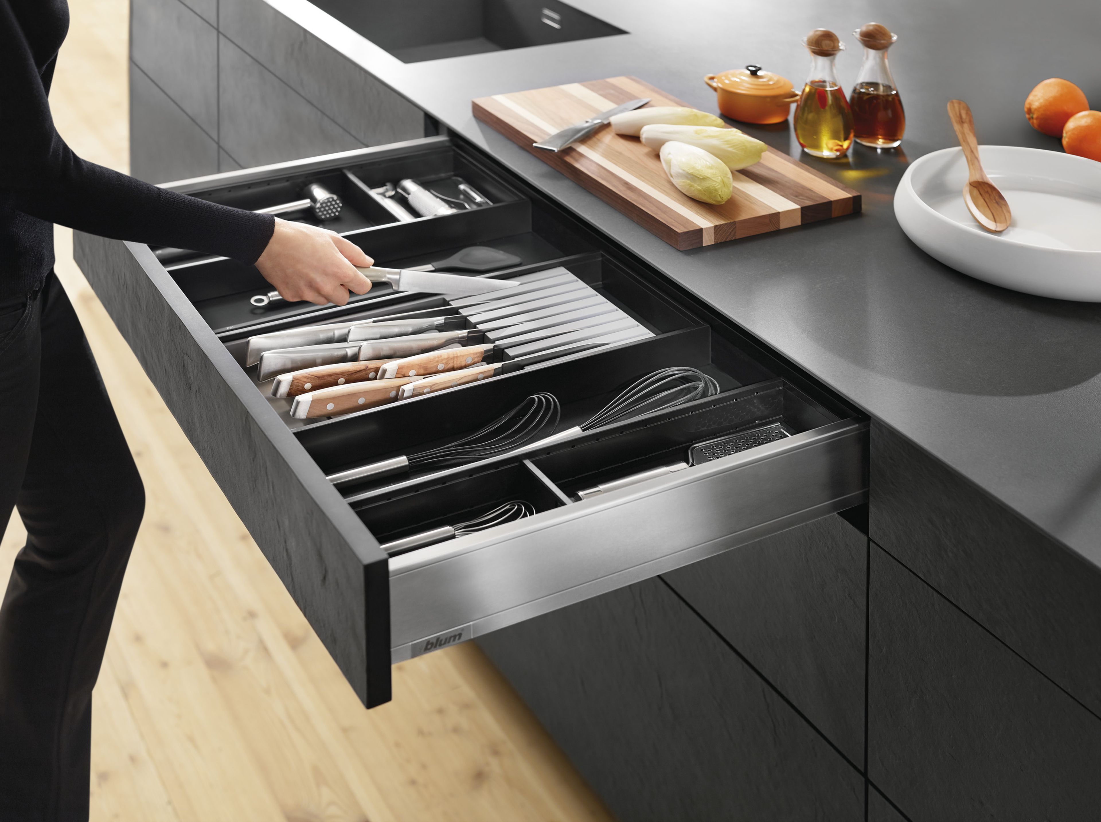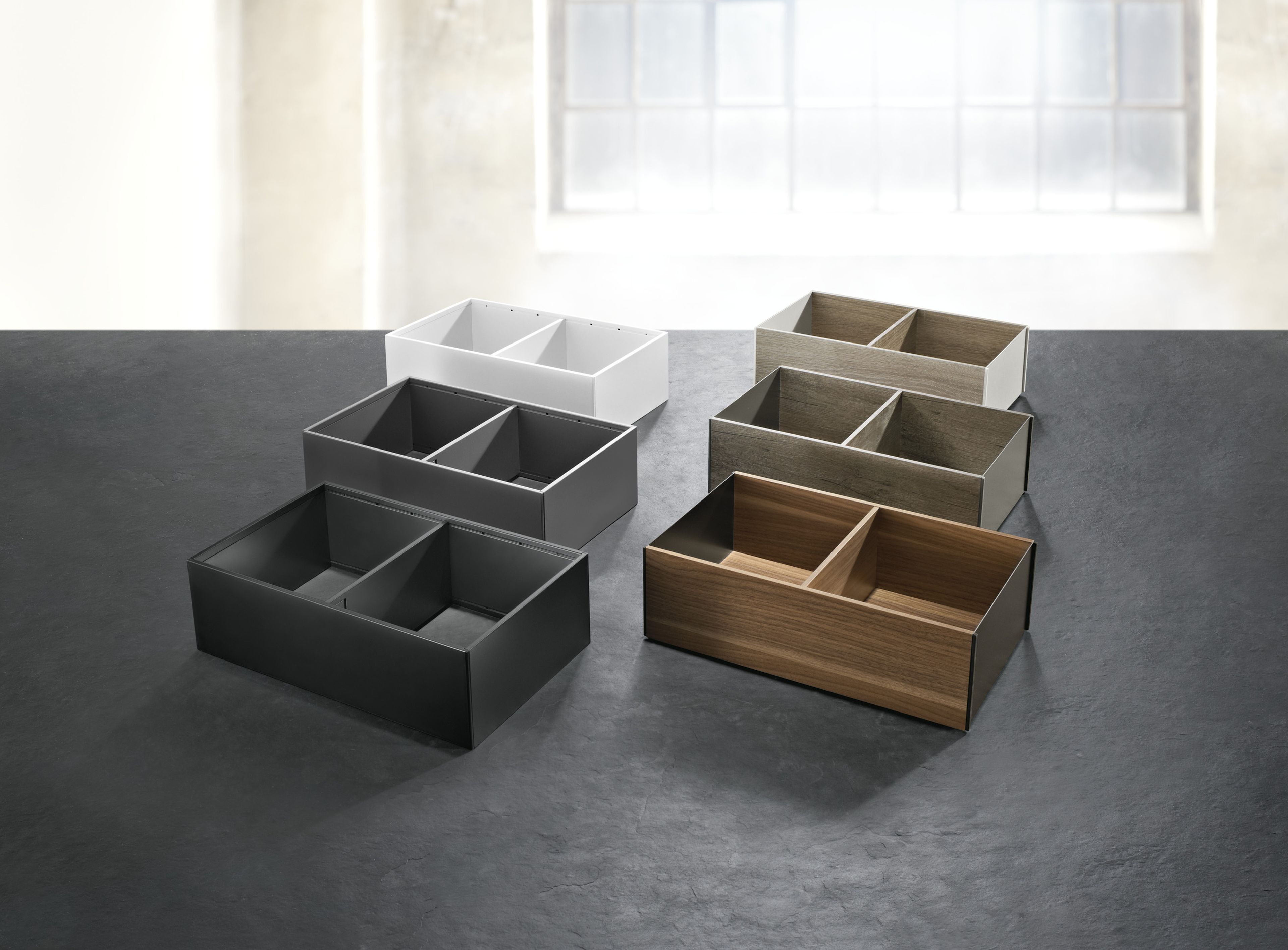 Blum bietet mit und zwei unterschiedliche Inneneinteilungssysteme an, die perfekt zu den gängigen Schubladen passen.