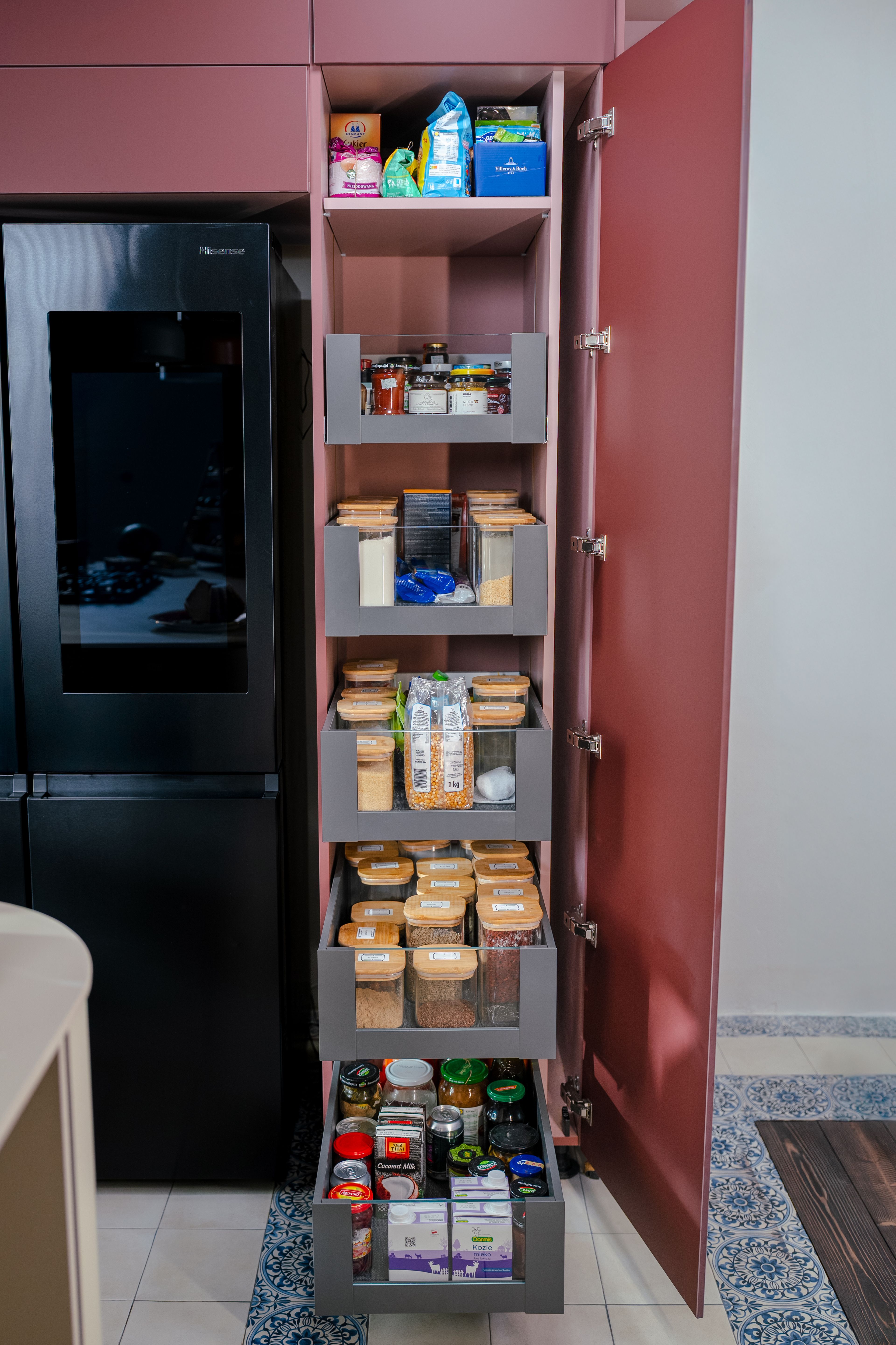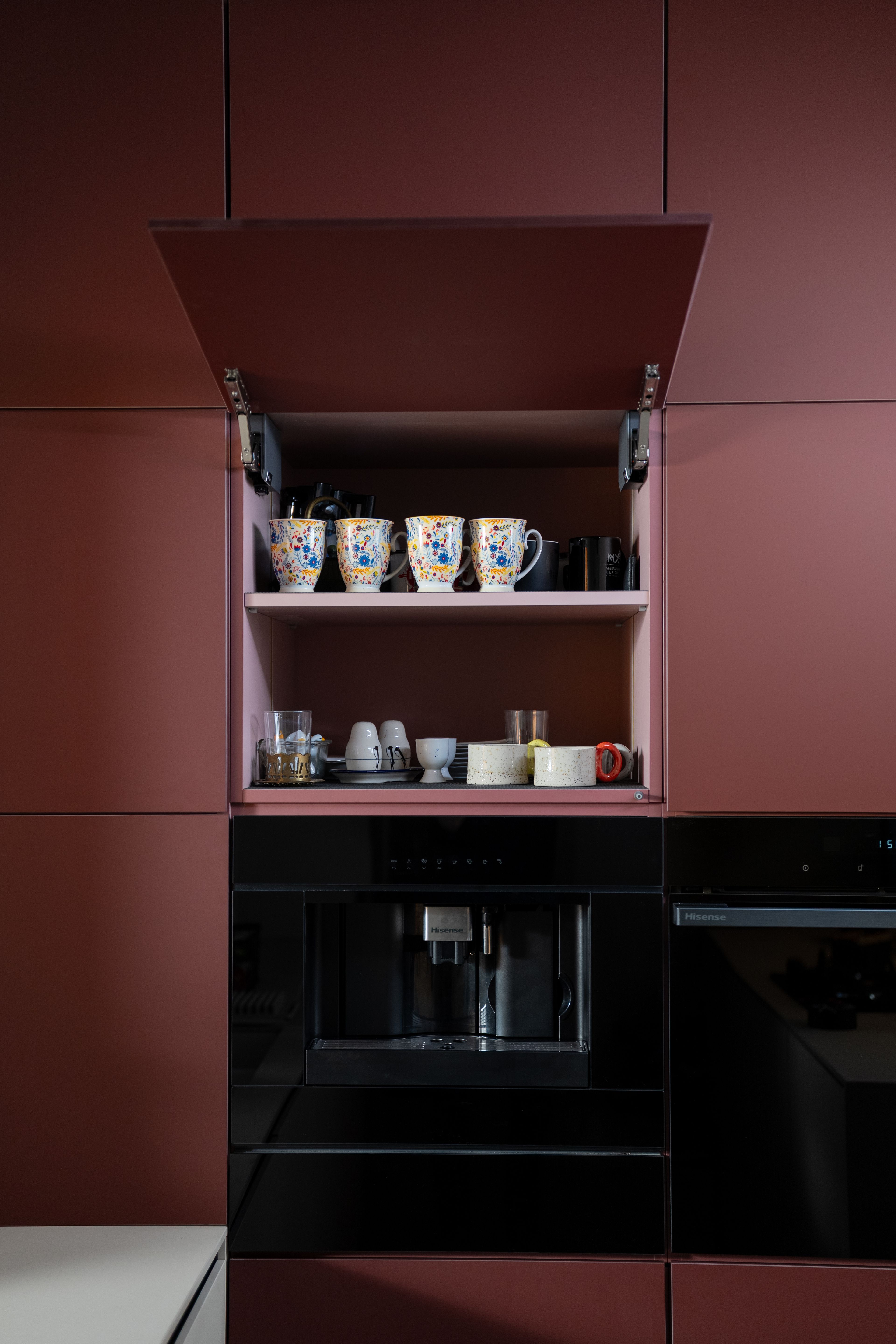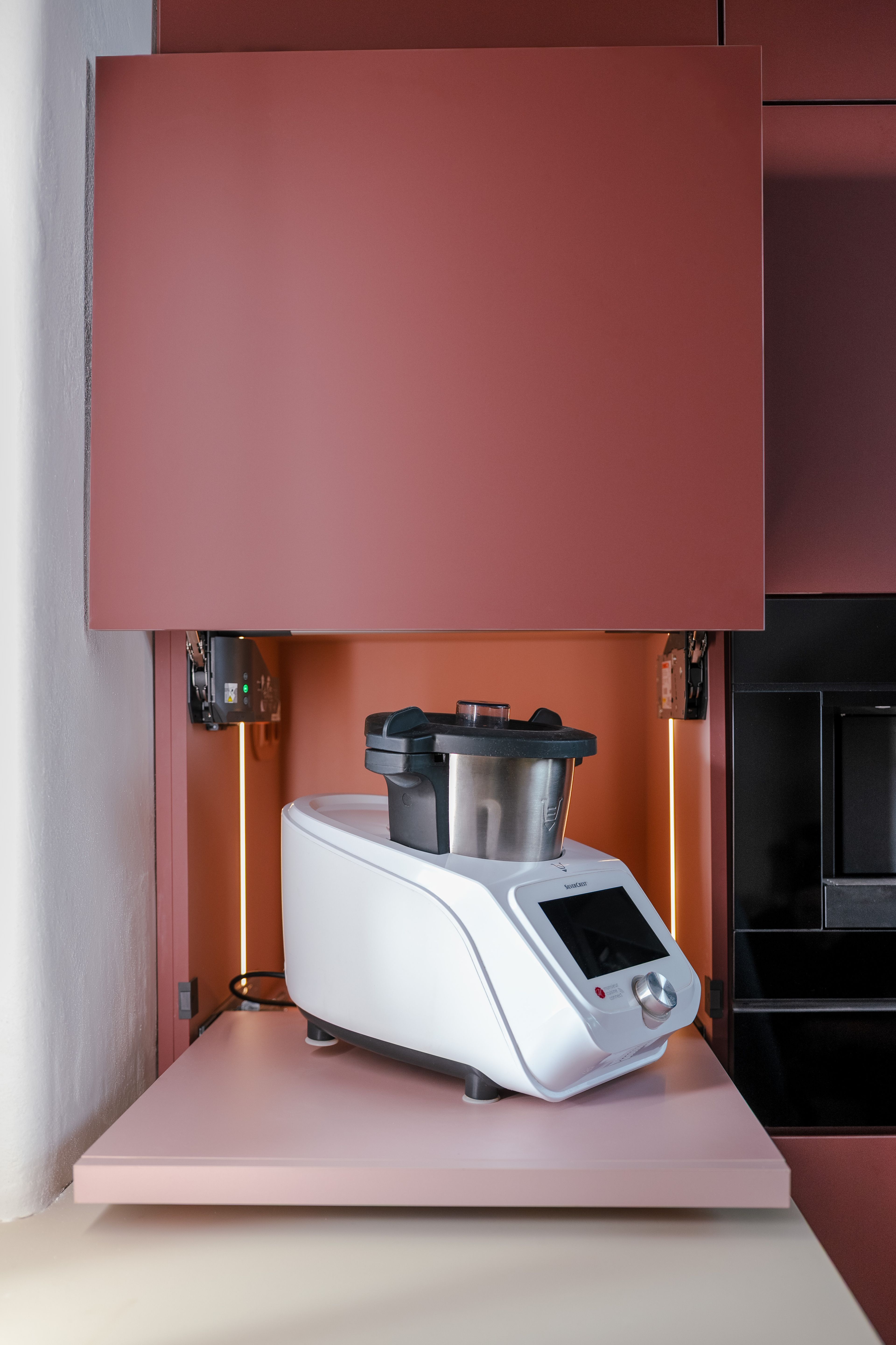 Największe wrażenie robi jednak system REVEGO, który pozwala schować ekspres do kawy, robot kuchenny czy inne sprzęty. Dzięki temu kuchnia pozostaje schludna i estetyczna, nawet kiedy odwiedzają ją goście.